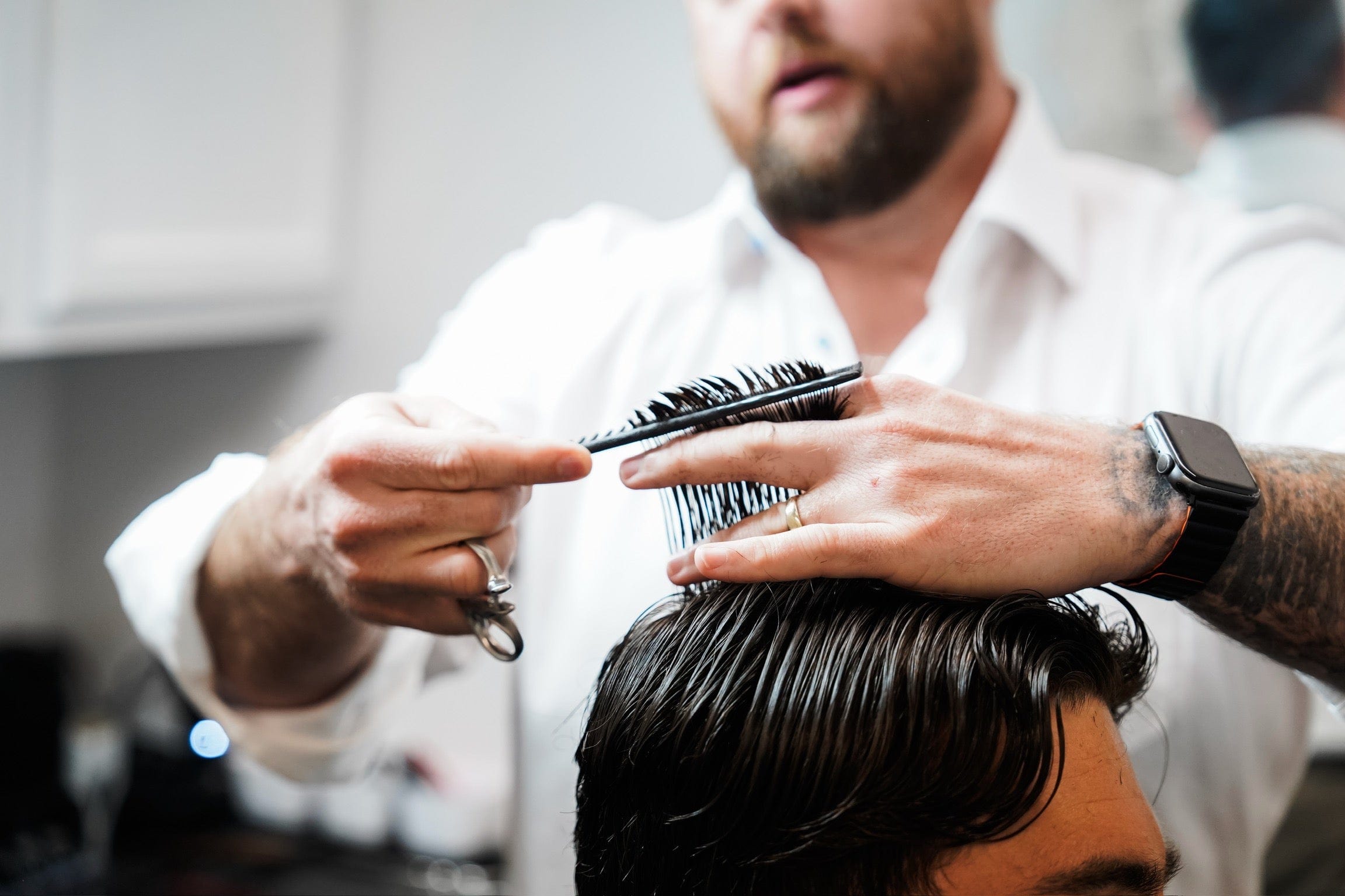 We take great pride in the art of the barber experience. Our grooming room features an all-leather reclining chair, shaves from custom-made stainless steel blades, and a scoop-neck porcelain shampoo bowl.
