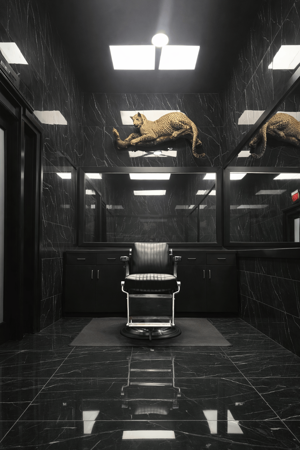 We take great pride in the art of the barber experience. Our grooming room features an all-leather reclining chair, shaves from custom-made stainless steel blades, and a scoop-neck porcelain shampoo bowl.